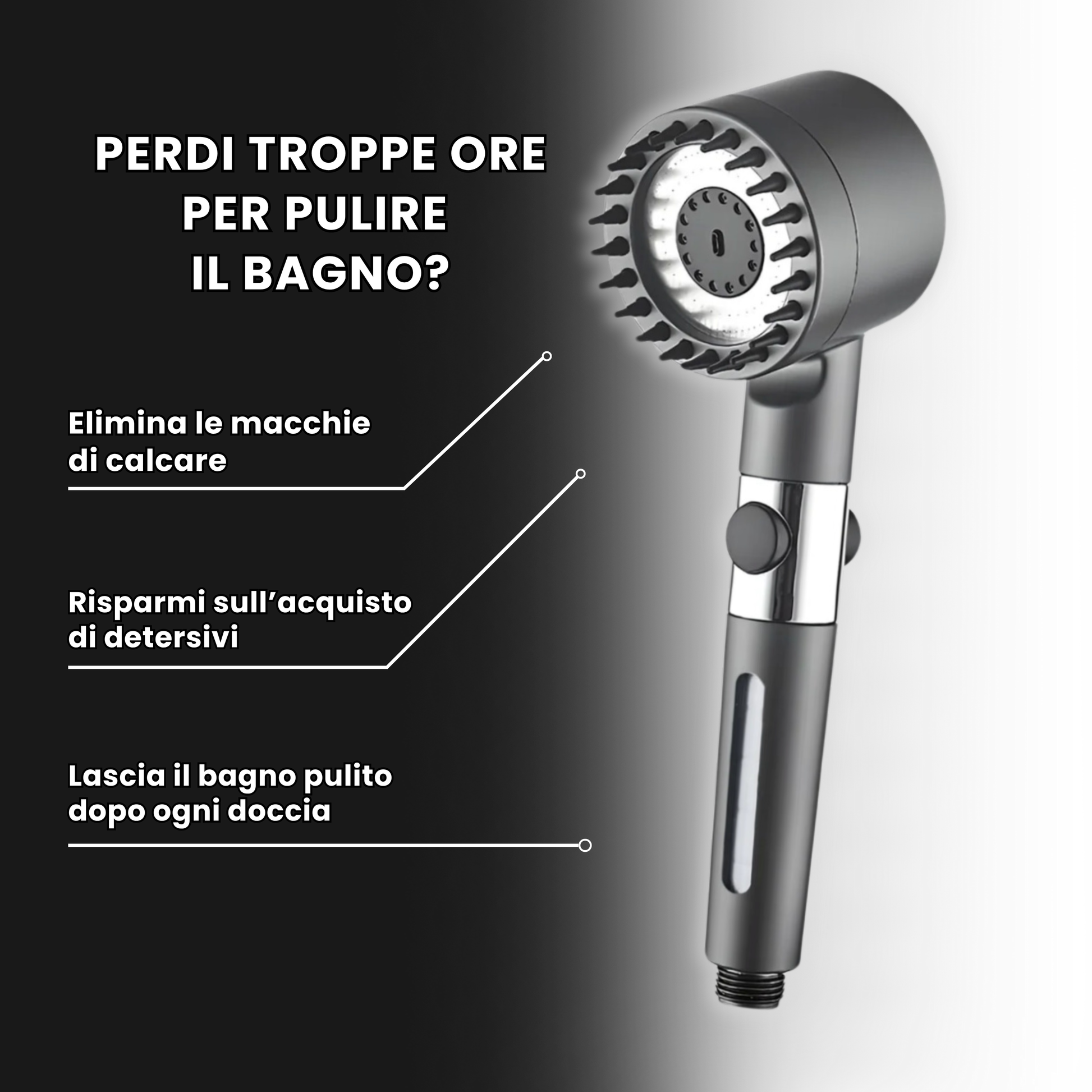 Il doccino filtrante riduce la formazione di calcare, previene macchie e ti permette di mantenere il box doccia pulito con molta meno fatica.